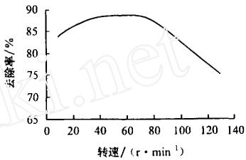 由圖3可看出,在60 - 80 r/min時攪拌速度對絮凝結果影響不大,小于這個范圍則由于水樣和絮凝劑混和不夠充分,反應不完全;大于這個范圍,尤其是超過100 r/min之后,脫色率急劇下降,這是由于攪拌速度過快,使形成的絮團又被打碎,因而絮團非常小,沉降效果很差,絮凝后幾乎不分層,且沉淀時間很長,都會使得絮凝結果不理想。